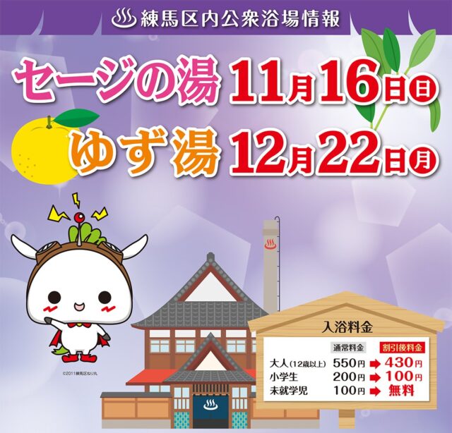 • 11/16(日) セージの湯、12/22(月) ゆず湯
