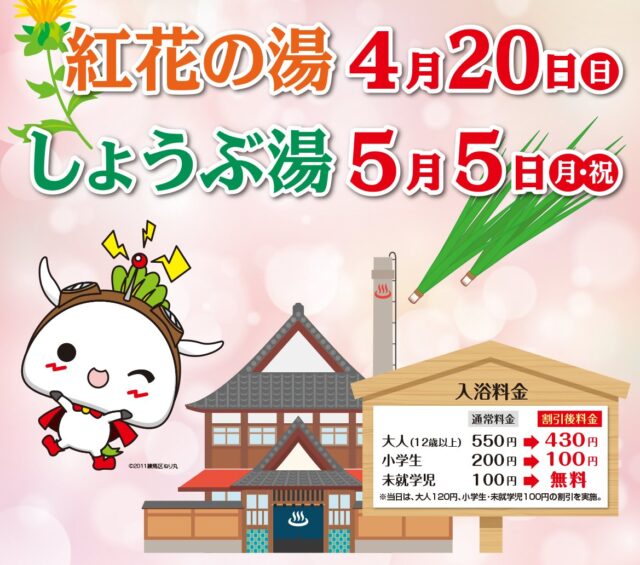 両日とも、割引料金でご入浴ができますので、この機会に是非どうぞ!