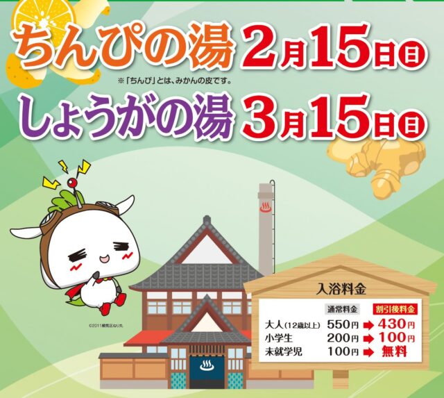 • 2/15(日) ちんぴの湯、3/15(日) しょうがの湯